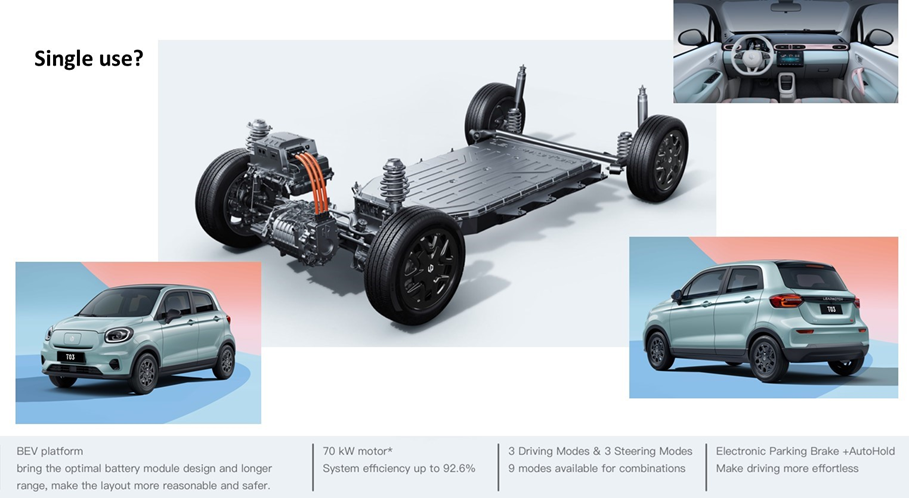There is a large demand in China for basic transportation – vehicles that are seemingly well equipped with airbags but are closer to a quadracycle than a car. These products are already made in large volume, are very useful for running around, and could be sold at a profit with all duties paid for less than £10000. A lot less.